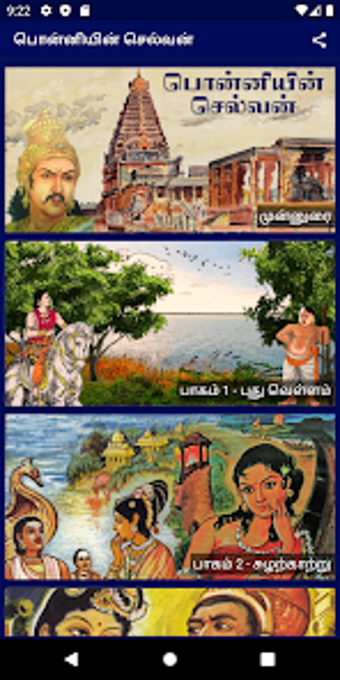 Ponniyin Selvan adalah sebuah aplikasi pendidikan yang menawarkan akses ke novel terkenal dalam sastra Tamil. Novel ini pertama kali diterbitkan sebagai seri dalam majalah Kalki pada tahun 1950-an dan dikenal sebagai salah satu karya sastra terhebat dalam bahasa Tamil. Aplikasi ini menyediakan teks novel secara gratis, memungkinkan pengguna untuk membaca dan menikmati karya klasik ini dalam format digital.